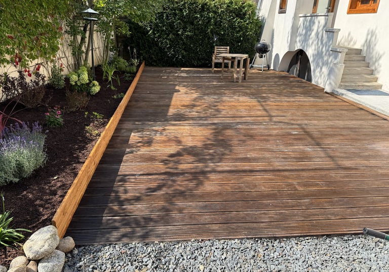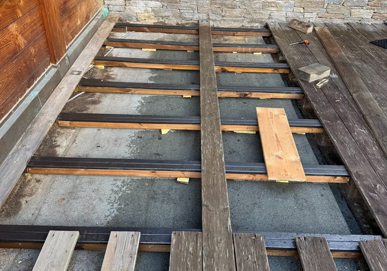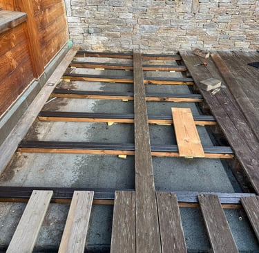 Decks and wooden terraces in mountain environments need regular upkeep. We conduct small repair work, clean and re-seal external wooden spaces to make them last longer. We also clean and upgrade patios.